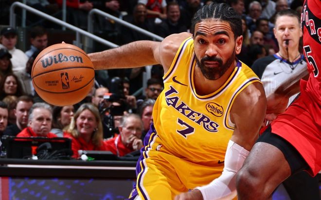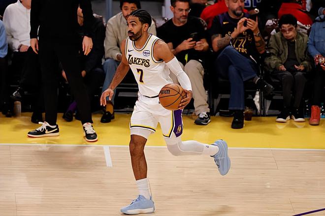 本场比赛中,虽然湖人取得了胜利,但是顶替东契奇担任球队先发控卫的盖布-文森特(Gabe Vincent)的表现其实依然是非常一般的。文森特全场出场24分19秒,投篮8中2,三分线外5中1,得到了5分2篮板4助攻1抢断1盖帽的数据,还有1次失误和6次犯规,正负值为0。文森特在进攻端依然是效率不佳,他的得分能力和投射能力依然是没有发挥出来,他也是浪费了不少投篮机会。文森特在传球和组织方面能够起到一定的作用,但是也绝对不能算是顶尖水平。文森特在防守端倒是非常努力,但是他也是不断出现各种犯规。总体来看,文森特在本场比赛中的存在感严重不足,作为一名先发控卫,这样的表现显然是无法令人感到满意的,他也完全有理由打出更好的表现。