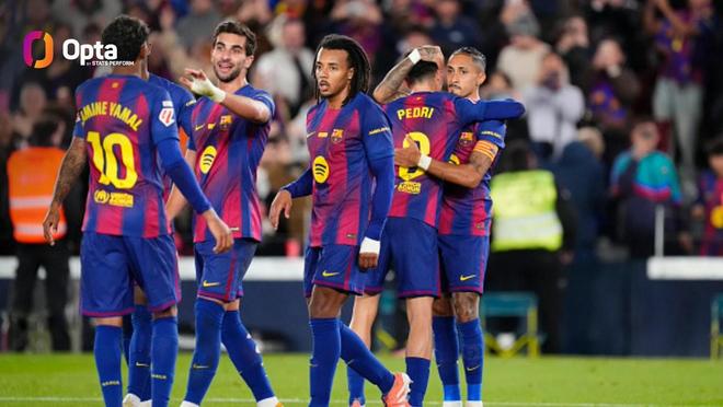 据统计,巴塞罗那是本赛季欧洲五大联赛中唯一一支有四名不同球员进球达到五球或以上的球队:费兰-托雷斯(11球)、莱万多夫斯基(8球)、亚马尔(6球)和拉菲尼亚(6球)。